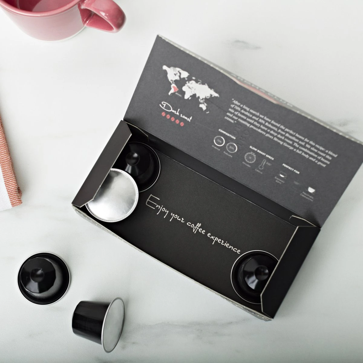 Wij branden de koffie volgens de ambachtelijke slow-roast methode. Waarom? Om de smaken en aroma’s optimaal te benutten. En dat proef je. Welke blend koffiecups het beste bij jou past, ligt vooral aan je smaakvoorkeur. Wij hebben daarom 5 verschillende smaken Nespresso compatible capsules ontwikkeld. Voor iedere koffiedrinker kunnen wij zo de ultieme koffiebeleving bieden. Onze koffiebonen worden CO2-neutraal gebrand en zijn Fairtrade, Organic & Rainforest Alliance gecertificeerd.
